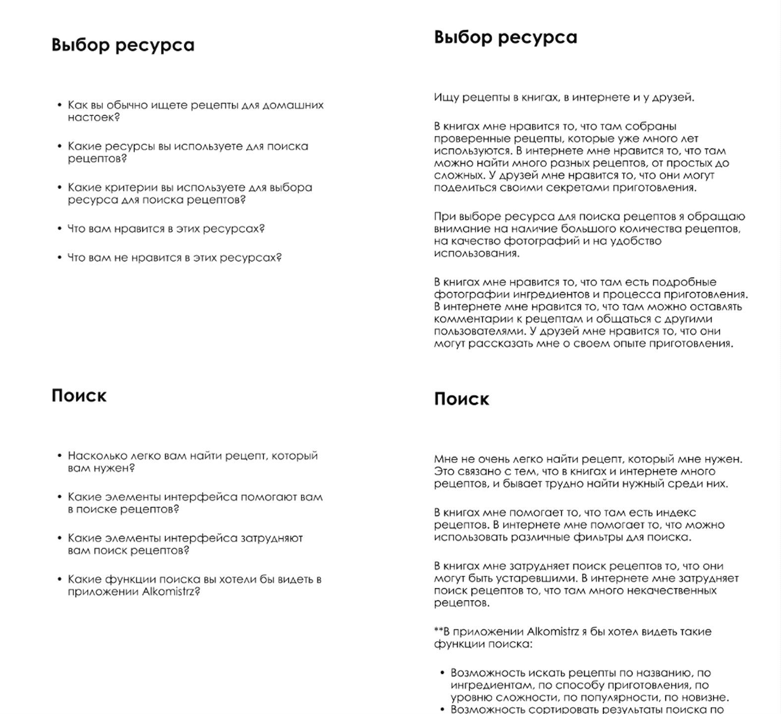 Мы провели анализ рынка, интервью и CJM. Выделили главные боли: трудно найти надёжные рецепты, нет поиска по ингредиентам, сложно контролировать несколько настоек, отсутствует обратная связь и обучающий контент.