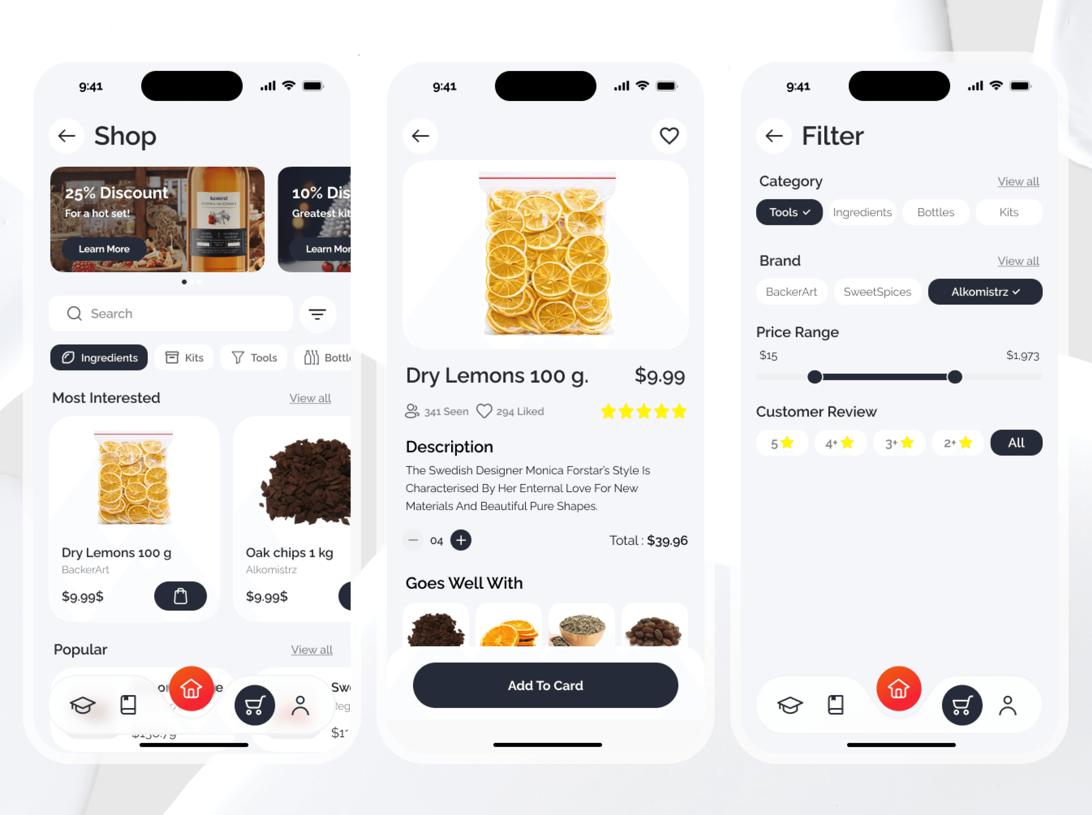 Отдельный, удобный функционал для покупки отдельных ингредиентов и готовых наборов в одном месте