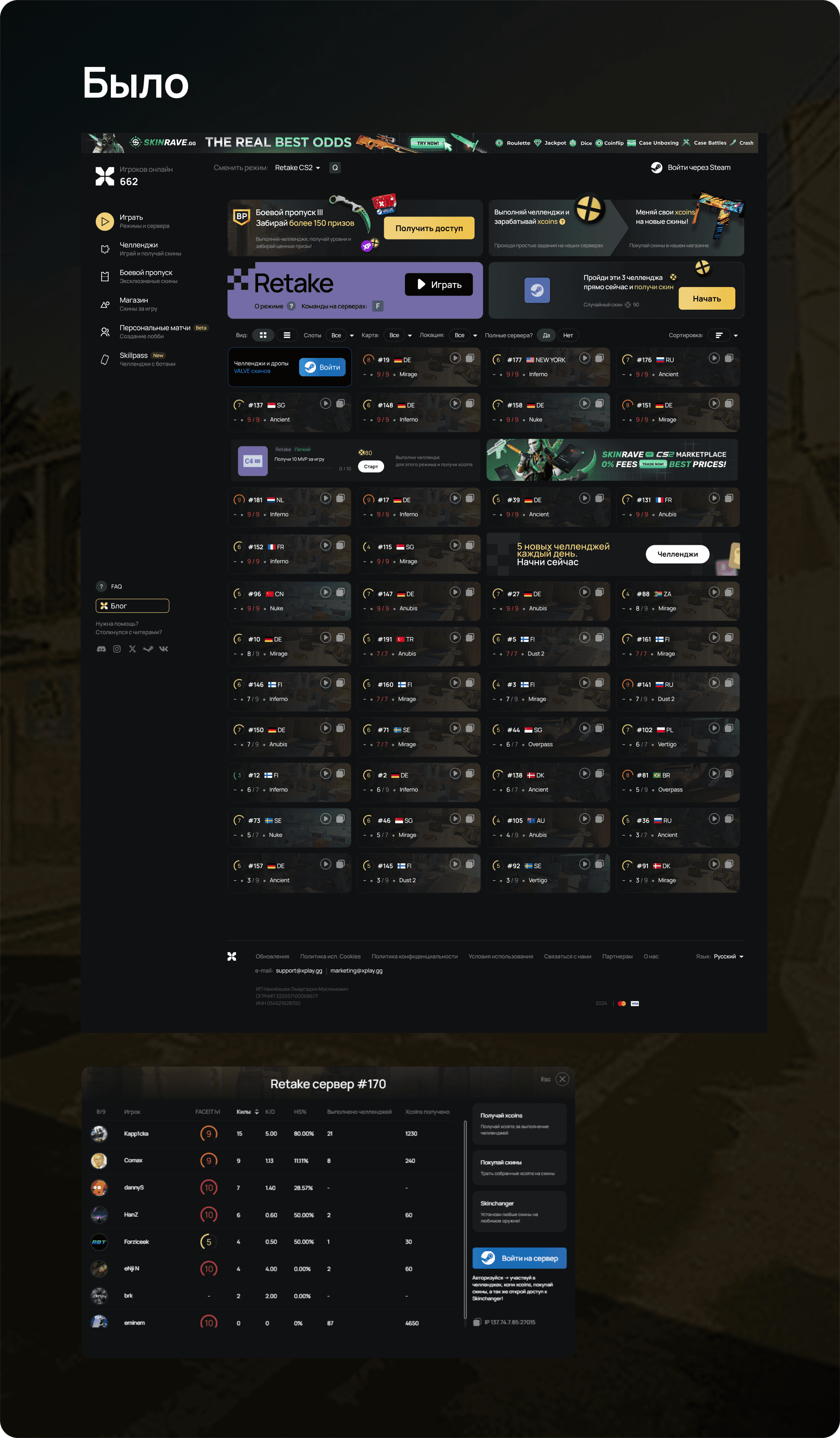 Страница игрового режима Retake на платформе xplay.gg демонстрировала низкие показатели конверсии: из всего SEO-трафика лишь 1,89% пользователей регистрировались. Для бизнеса это было критично: зарегистрированные игроки показывали пятикратный рост удержания, а рост базы пользователей напрямую влиял на привлекательность платформы для рекламодателей.